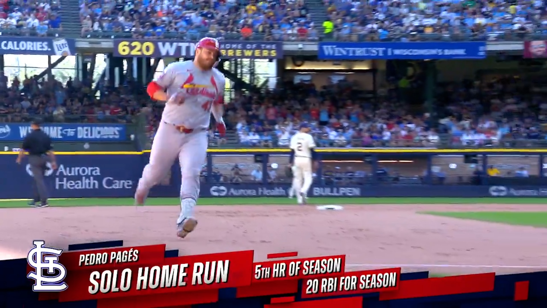 St. Louis Cardinals’ Pedro Pagés crushed his second home run of the day against the Milwaukee Brewers.